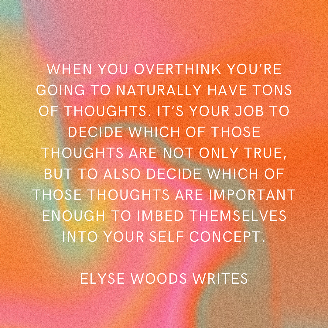 When you overthink you’re going to naturally have tons of thoughts. It’s your job to decide which of those thoughts are not only true, but to also decide which of those thoughts are important enough to imbed themselves into your self concept.